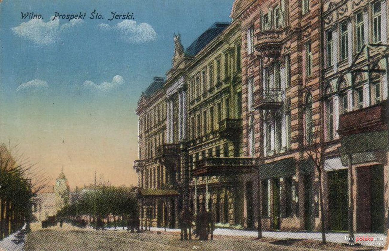Lata 1910-1916 , Fragment ówczesnego Prospektu Święto Jerskiego. Po prawej widoczne kamienica nr 22 i Hotel Georges. W tle majaczy dzwonnica katedry.Skomentuj zdjęcie |